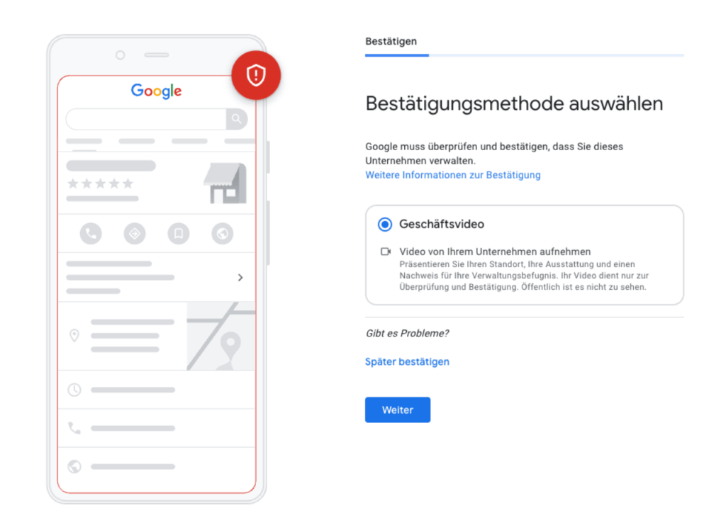 Google Unternehmensprofil bestätigen ohne Video.